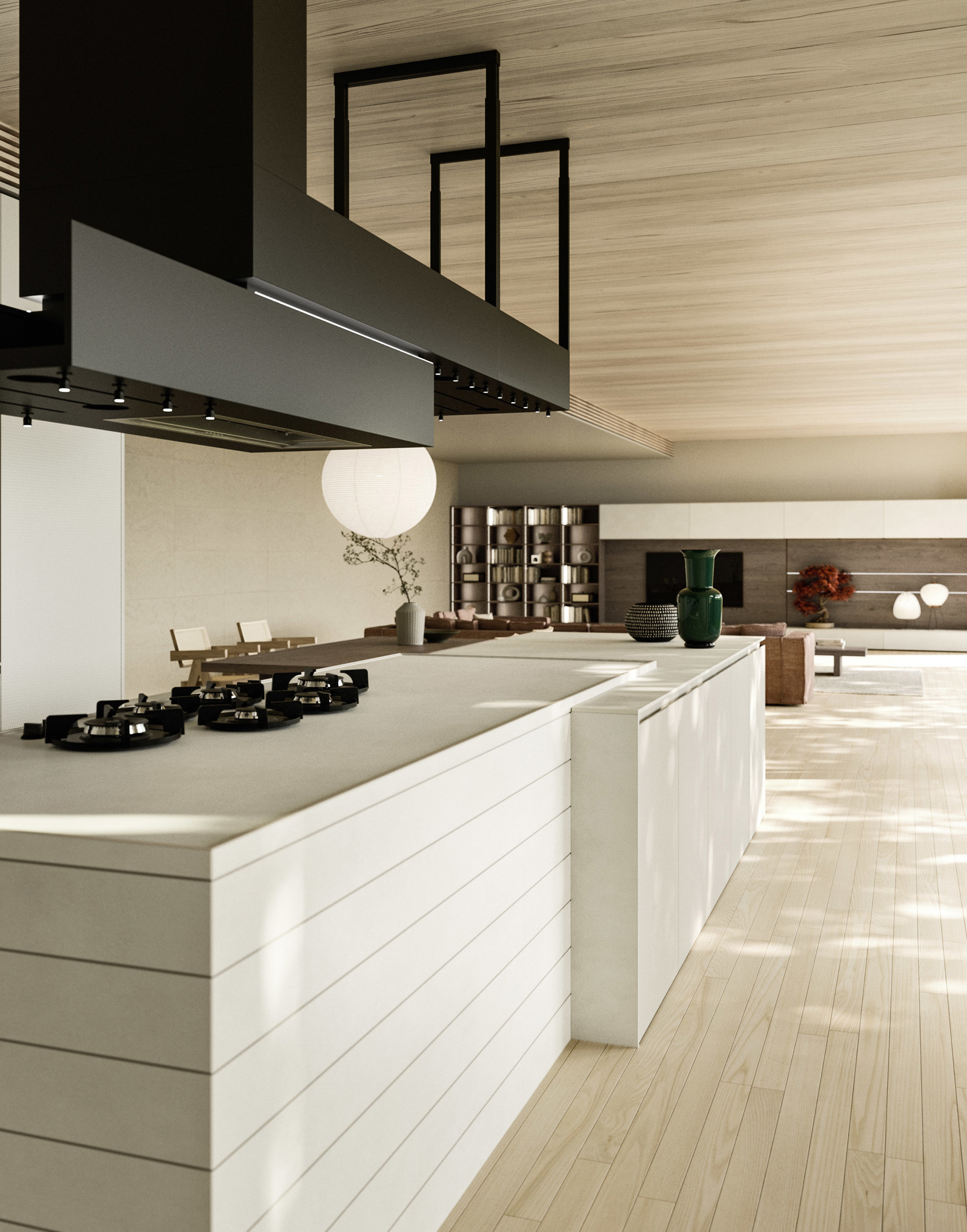 The Sospiro table can be integrated with the Blocks System to create a solution with a strong architectural impact based on the contrast between the lightness of the table and the strength of the monolith.