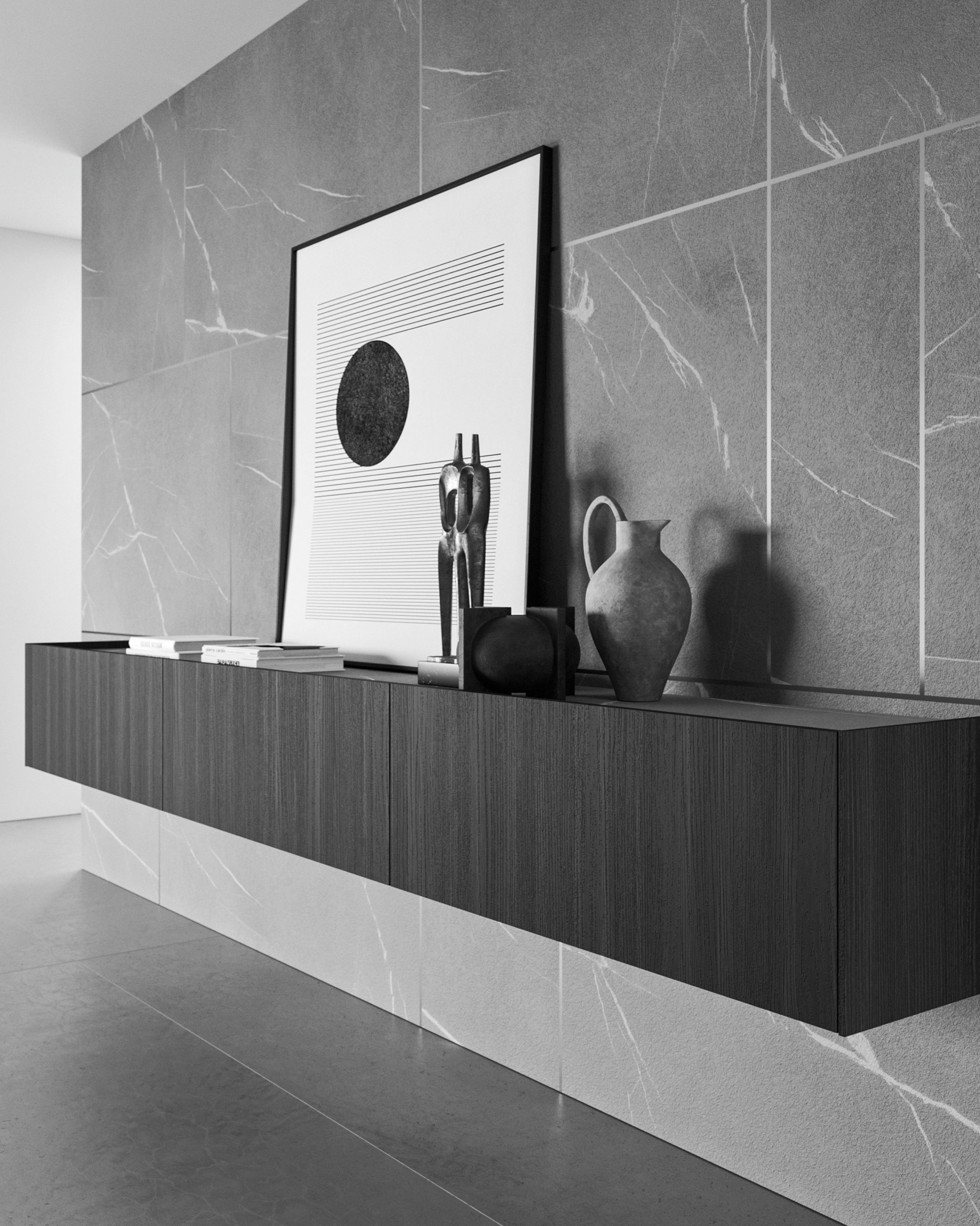 Fulcro del sistema sono i moduli, l'accento stilitisco è dato dalle ante, dalla più classica alla più contemporanea, e dai componenti caratterizzanti, segni che rendono unico lo spazio.