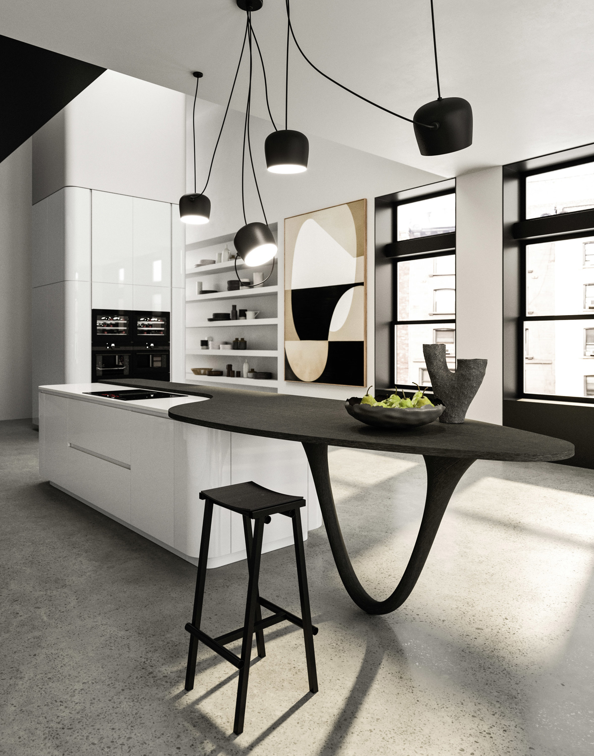 Ola propone la morbidezza del segno curvo, sintesi formale di vita e movimento. Tecnologia, artigianalità e disegno danno vita a una cucina dal carattere elegante che si caratterizza per morbidezza e senso estetico.