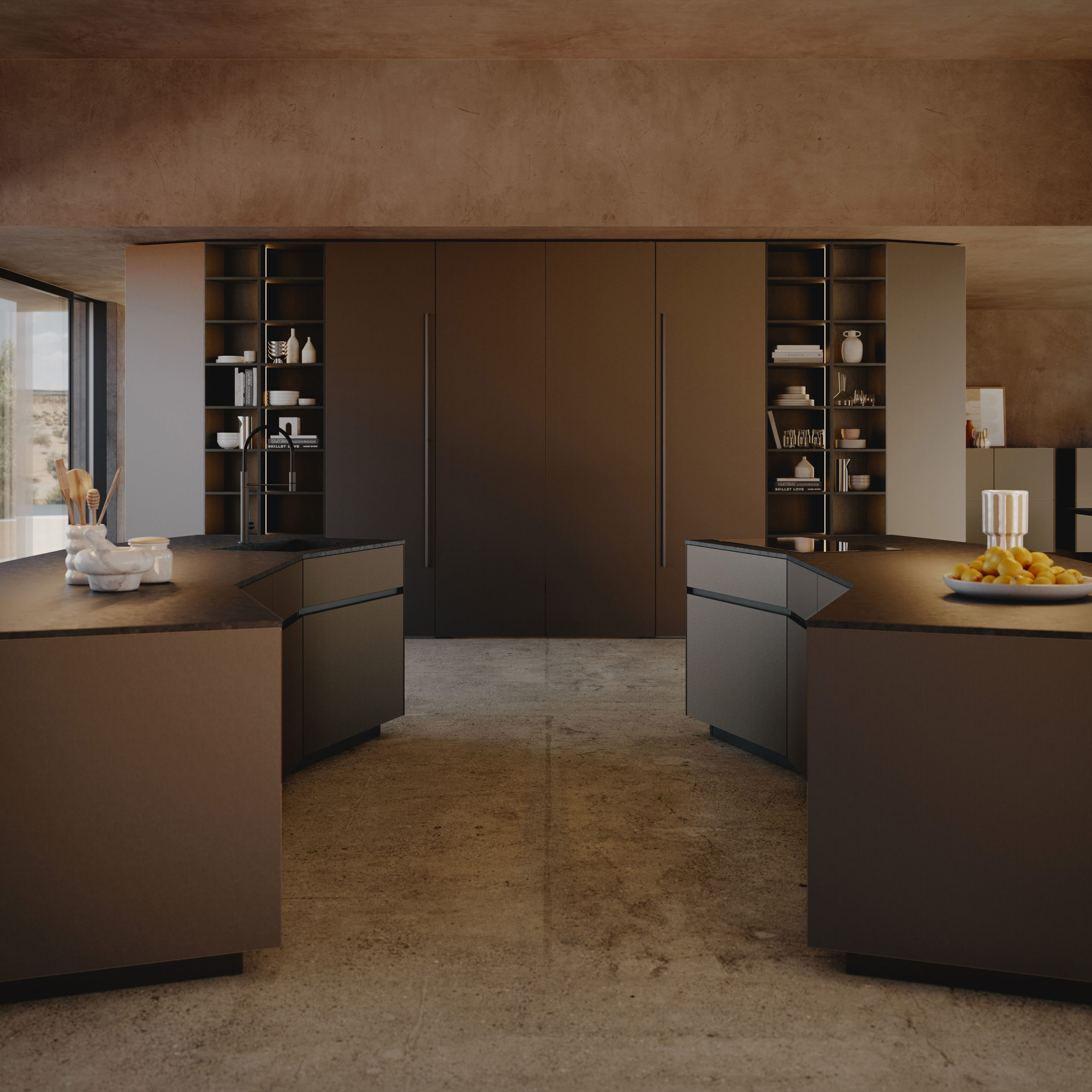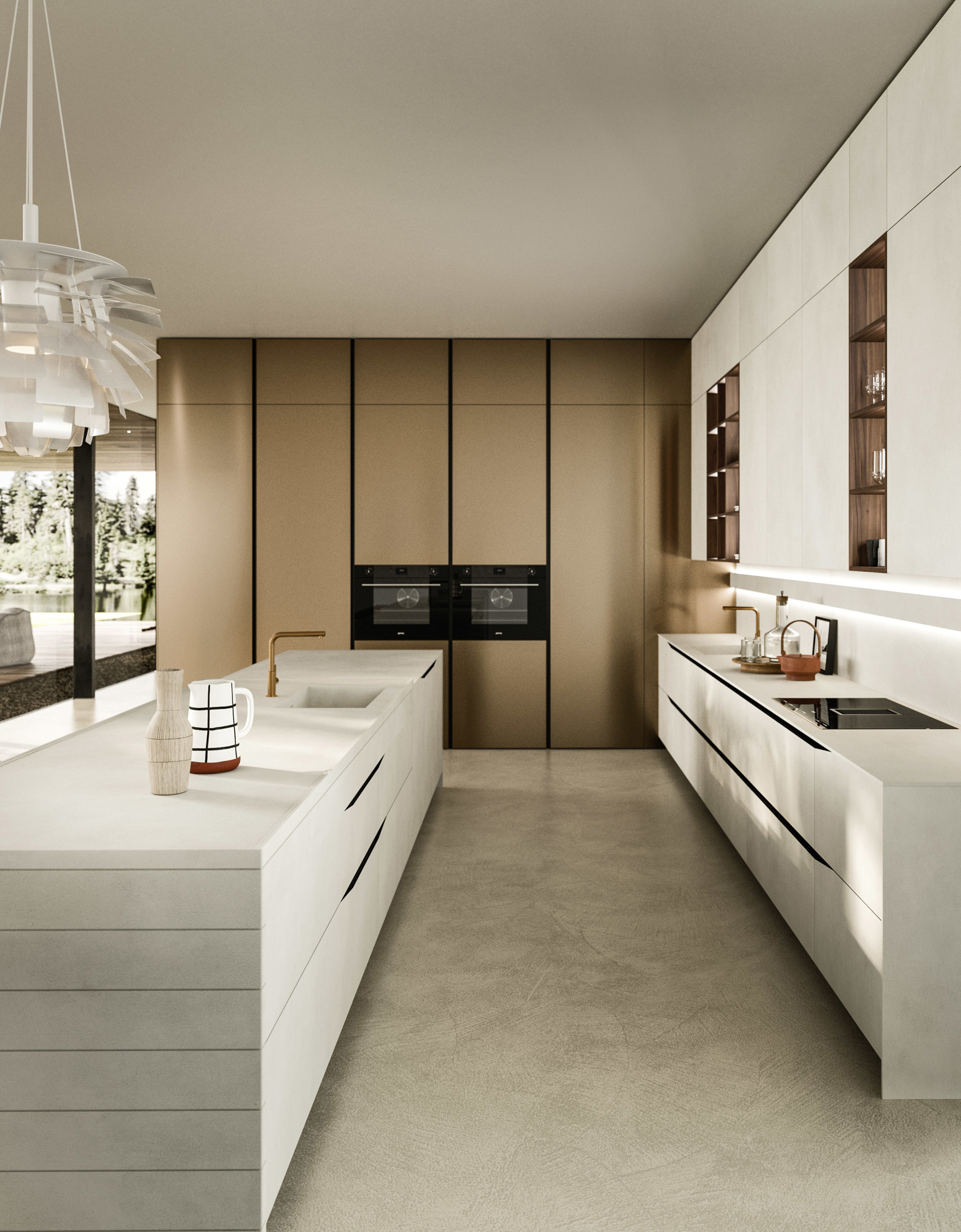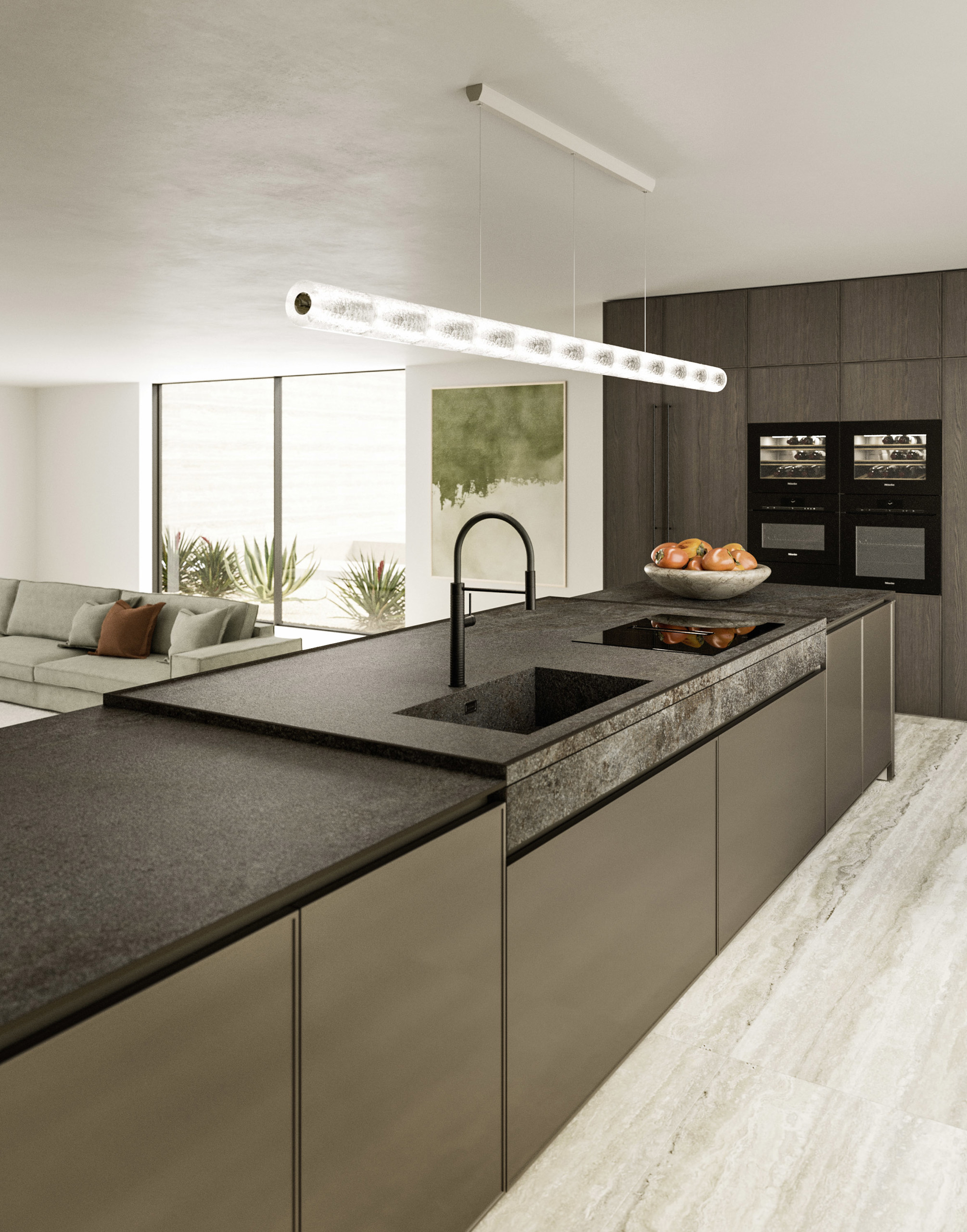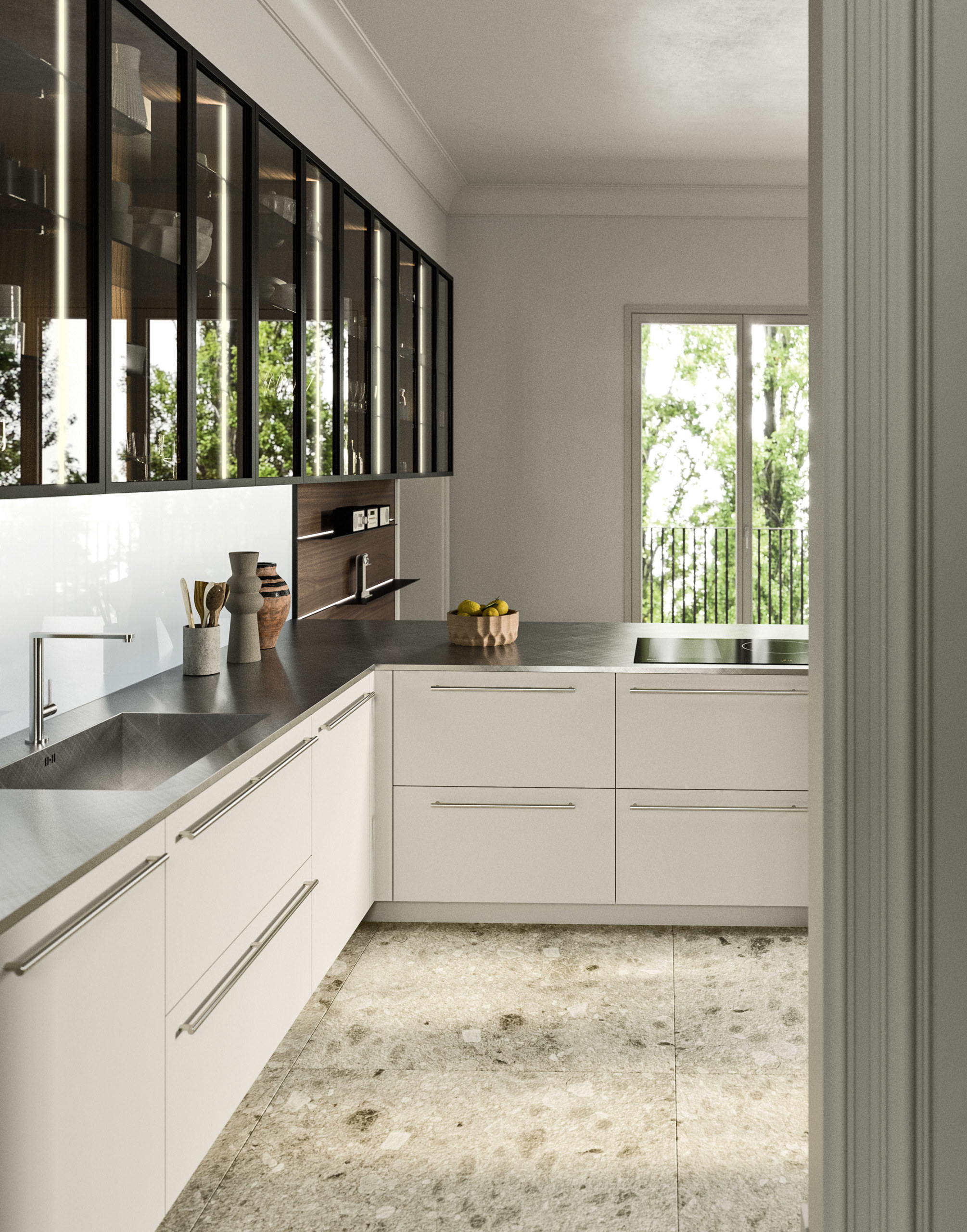 Trasversalità e progettazione: moduli, ante e componenti distintivi permettono di realizzare progetti di cucine moderne personalizzate e fortemente caratterizzati. L'ampia scelta di finiture rispecchia la personalità di chi vive l'ambiente.