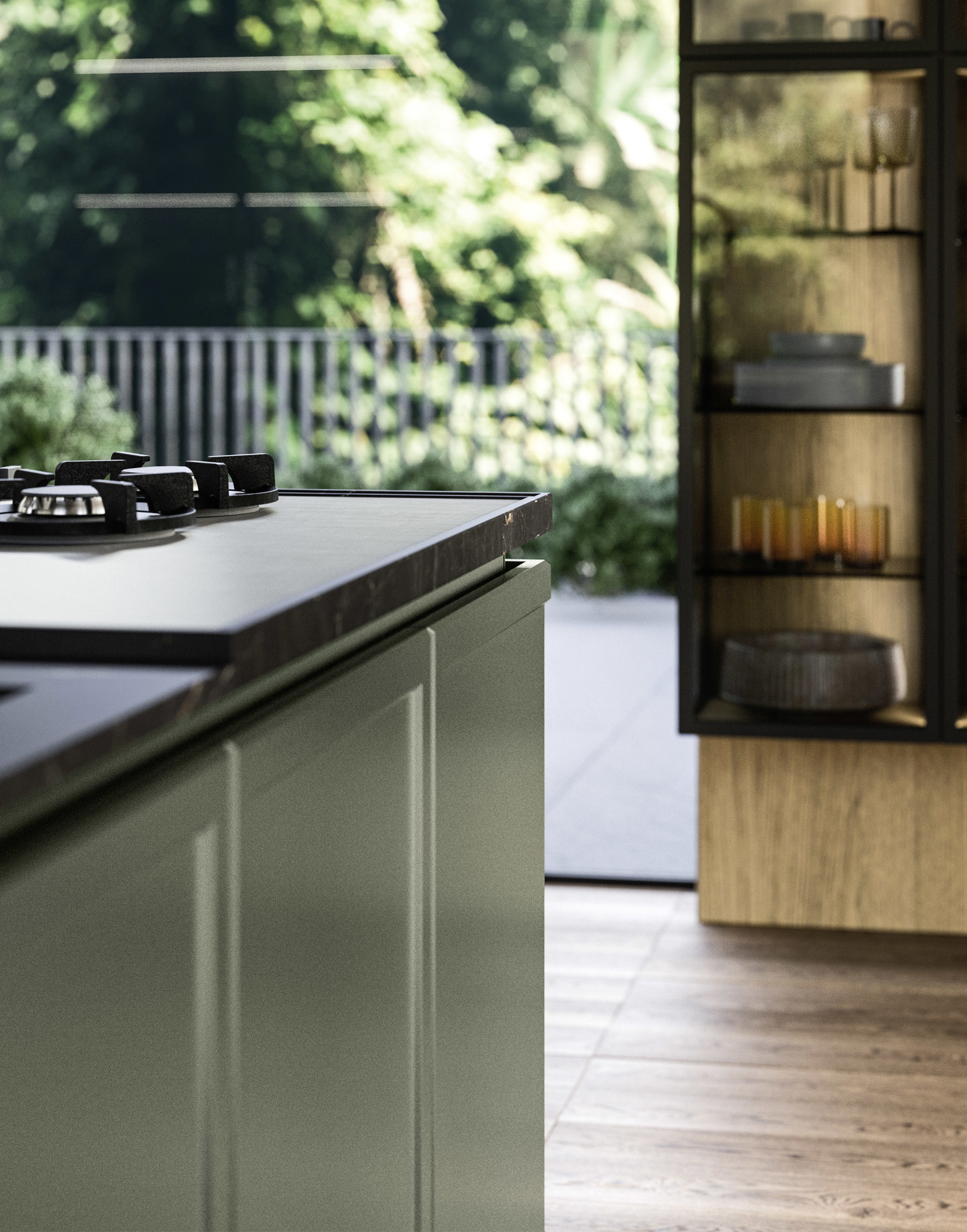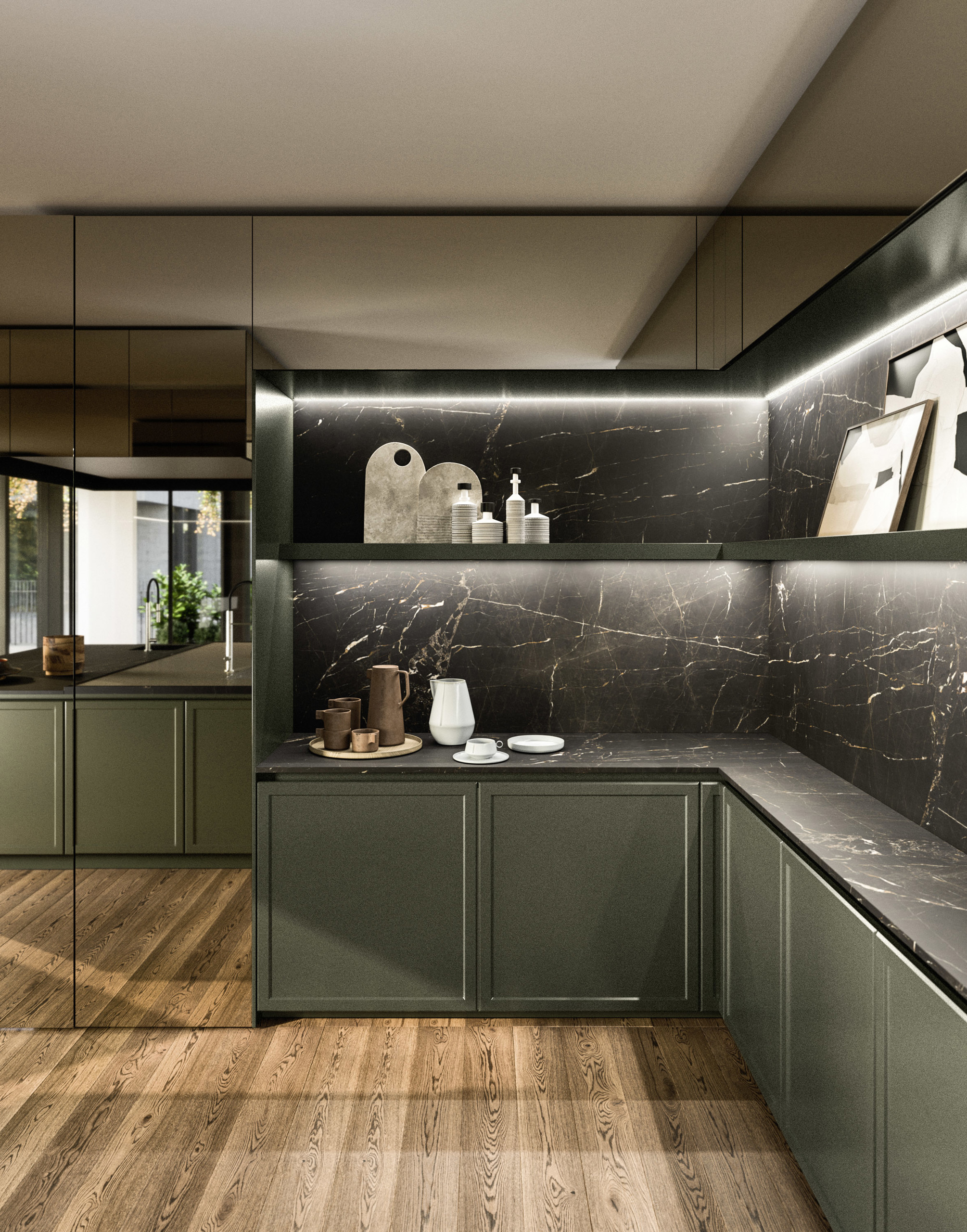 Oltre le porte Integra, lo spazio si trasforma in una cucina funzionale, progettata per massimizzare efficienza e organizzazione senza rinunciare allo stile.