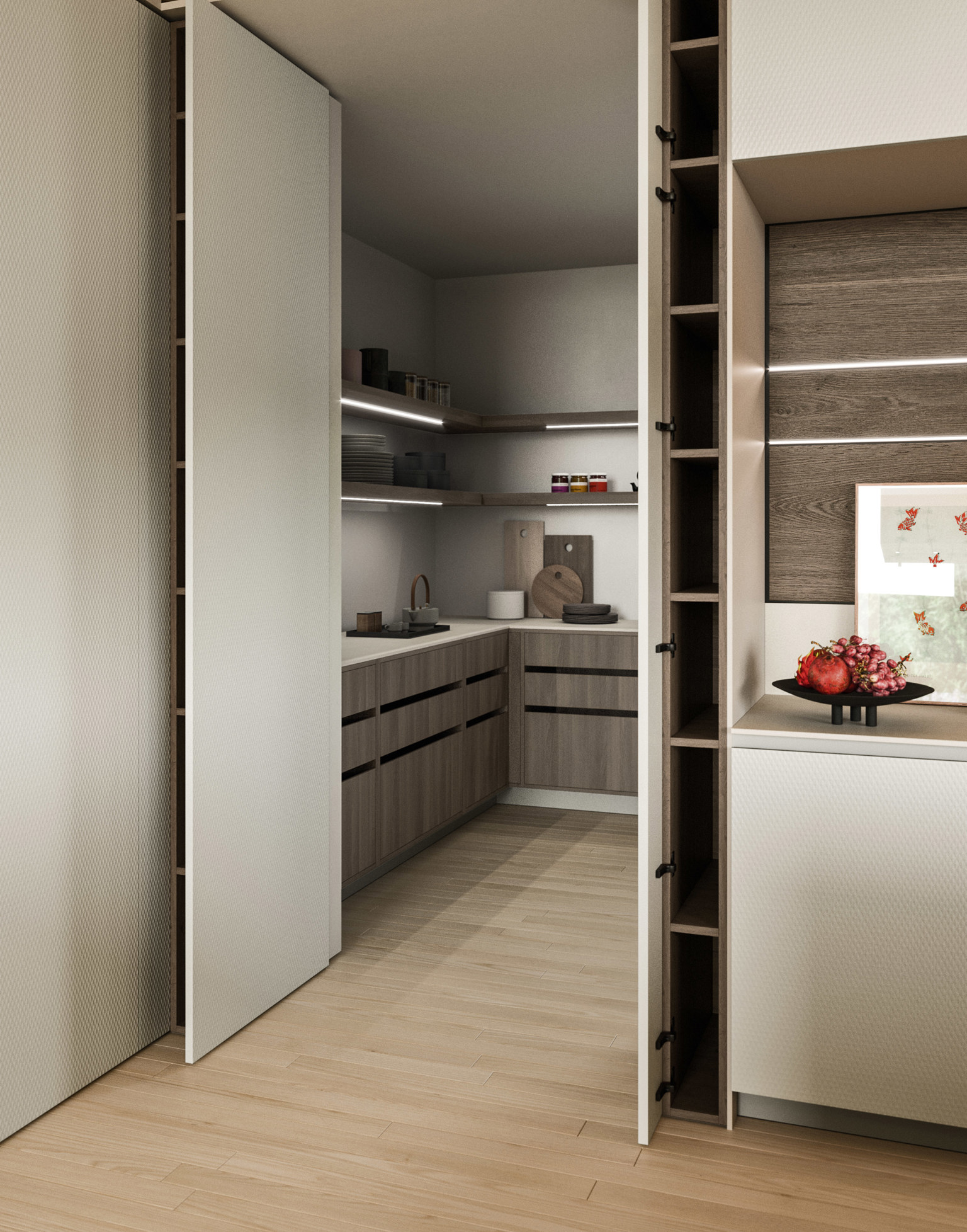 Le porte Integra introducono continuità visiva e fluidità tra gli ambienti. Disponibili nelle versioni
