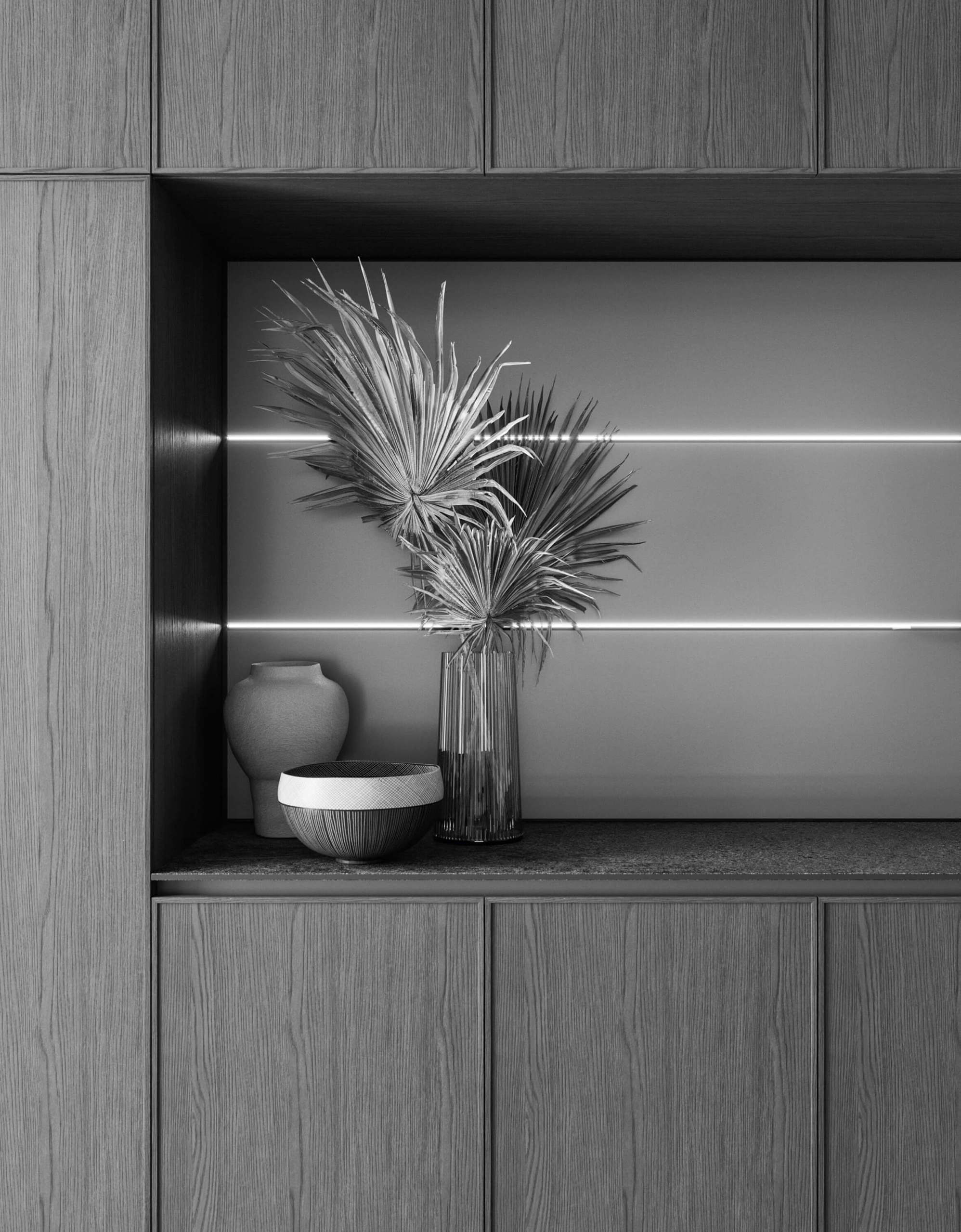 Le finiture utilizzate nella composizione contribuiscono a definire l’identità e la qualità del progetto, da approfondire per comprenderne ogni dettaglio.